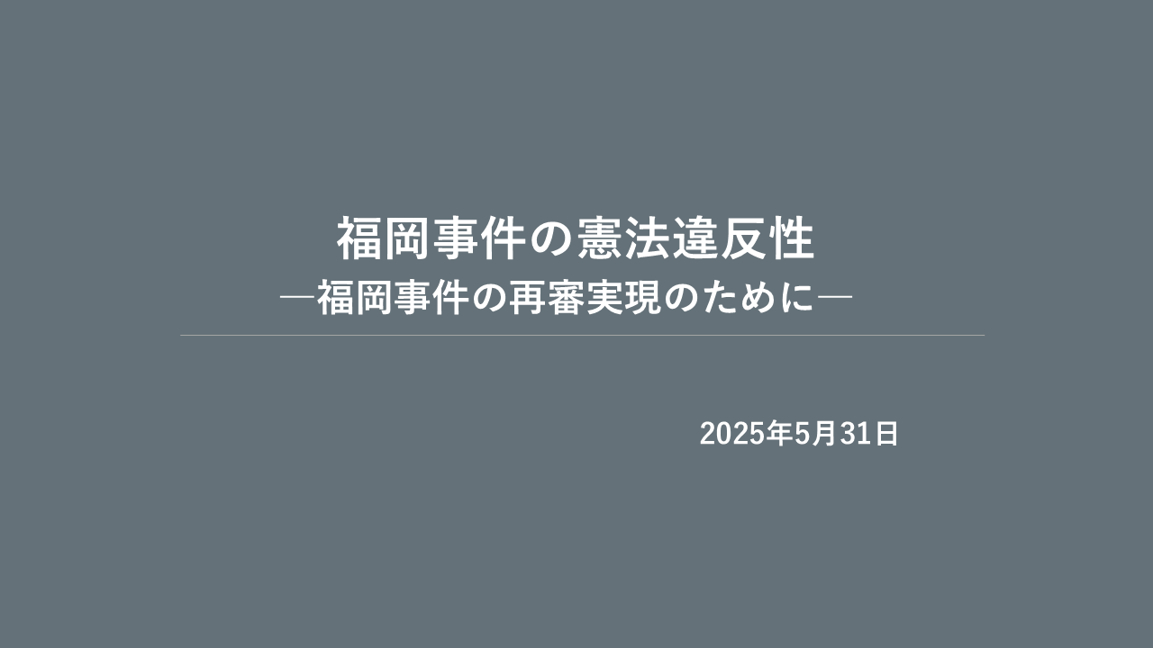 昨年のことになりますが、2024年の7月に最高裁判所にてハンセン病患者さんへの強制的な不妊手術、その不妊手術の根拠となった旧優生保護法の憲法違反が認められました。戦後13例目の最高裁判所による憲法違反判決に対し、最高裁判所は、除斥期間の適用を制限するとの統一的判断を示し、国に対して被害者への損害賠償の支払いを命じました。旧優生保護法は1948に施行され1996年に廃止されています。旧優生保護法の施行と福岡事件の発生は1年しか違いません。旧優生保護法の判決は時間経過に関係なく、現行憲法下での違反をきちんと最高裁判所が判断したものと評価できるでしょう。